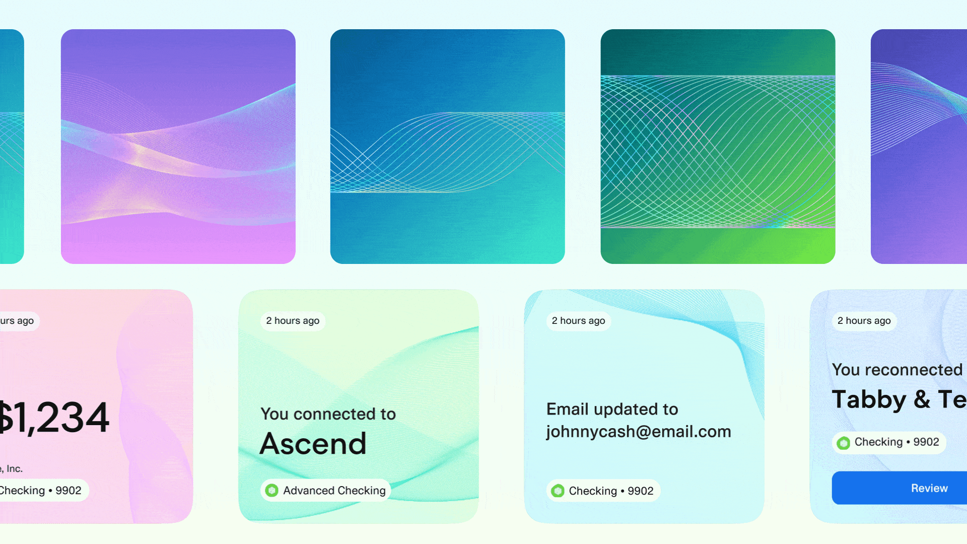 Unlike traditional guilloche, our patterns come to life. They shimmer like holographic strips. The guide our users through flows. They frame, they elevate, they interact. We procedurally generate these and continue to add to our library every day. At Plaid, we want to reinvent the technique over and over again so that no pattern looks the same way twice.